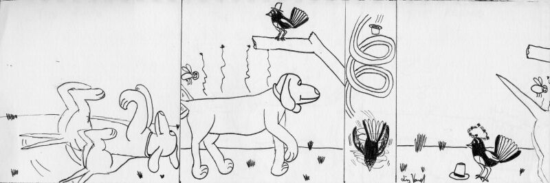 I really have no idea what "Sir Thomas Von Tail" (the wagtail) should say in the last panel